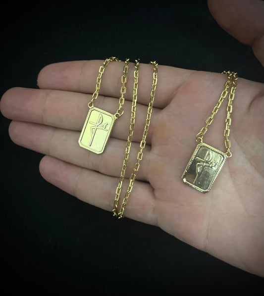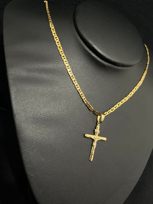 CORRENTE PIASTRINE 60CM X 3MM COM PINGENTE DE CRUCIFIXO