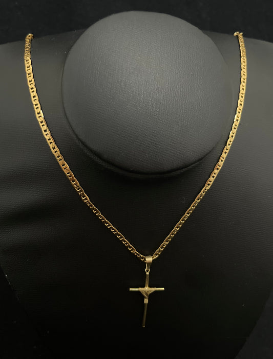 CORRENTE PIASTRINE 70CM X 3MM COM PINGENTE DE CRUCIFIXO PALITO