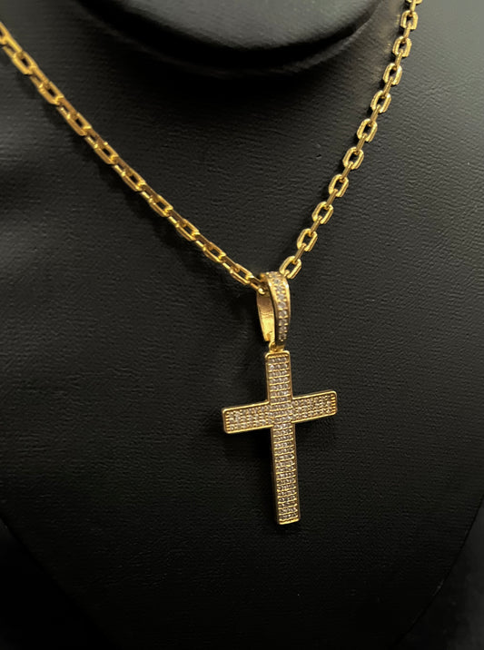 CORRENTE PIASTRINE 70CM X 3MM COM PINGENTE DE CRUCIFIXO PALITO