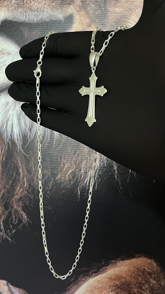 CORRENTE TIJOLINHO/VENEZIANA 3MM x 70CM + PINGENTE DE CRUZ MEDIEVAL