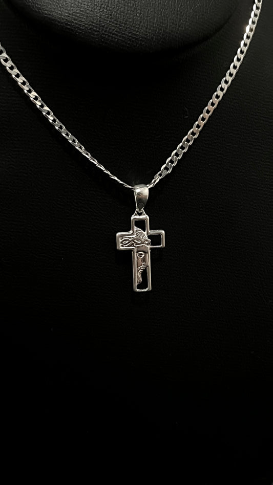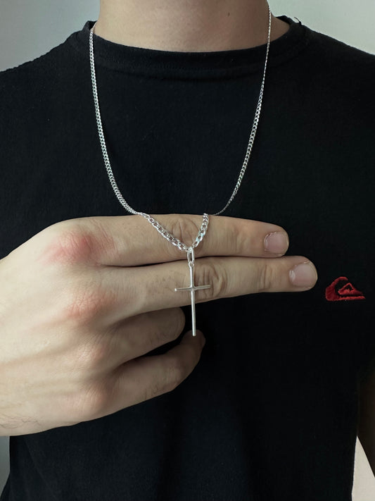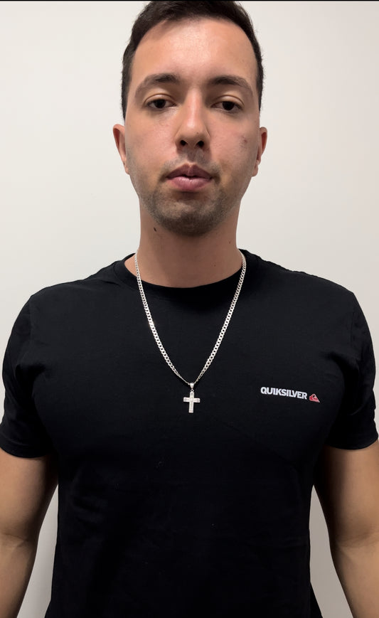 CORRENTE 3x1 5MM x 60CM COM PINGENTE DE CRUZ;