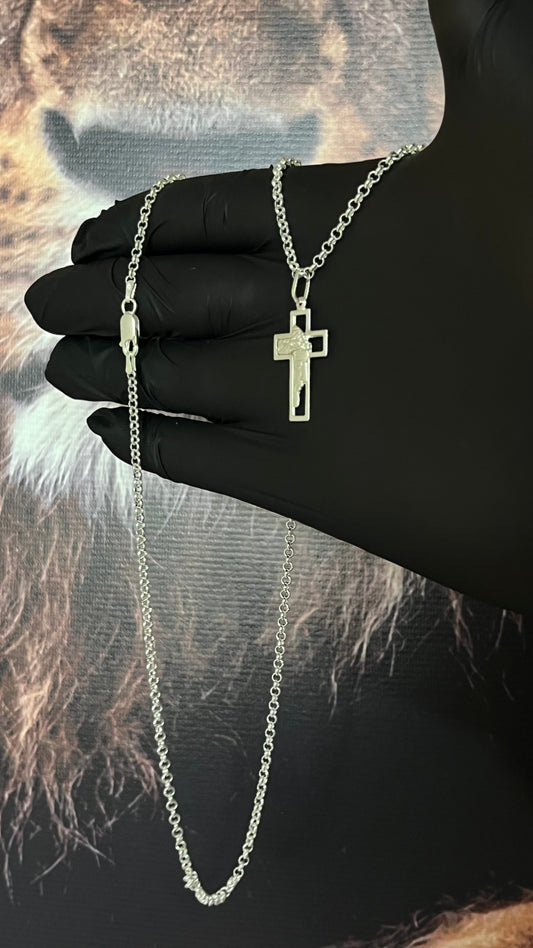 CORRENTE ELO PORTUGUÊS 3MM X 70CM + CRUCIFIXO VAZADO