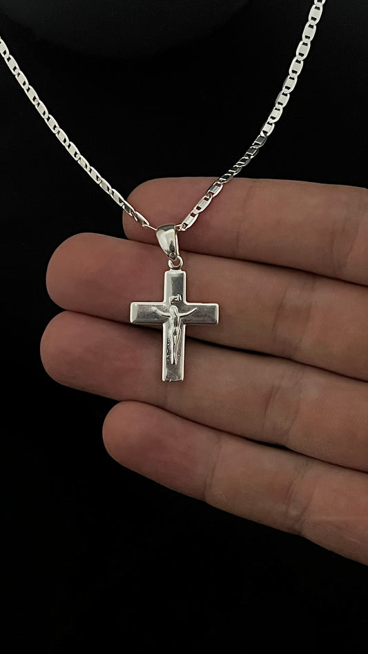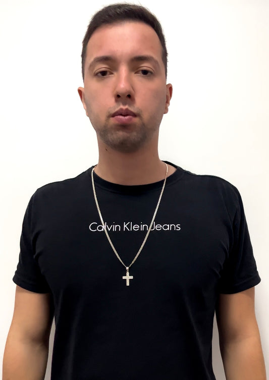 CORRENTE PIASTRINE 2MM X 70CM + PINGENTE DE CRUZ