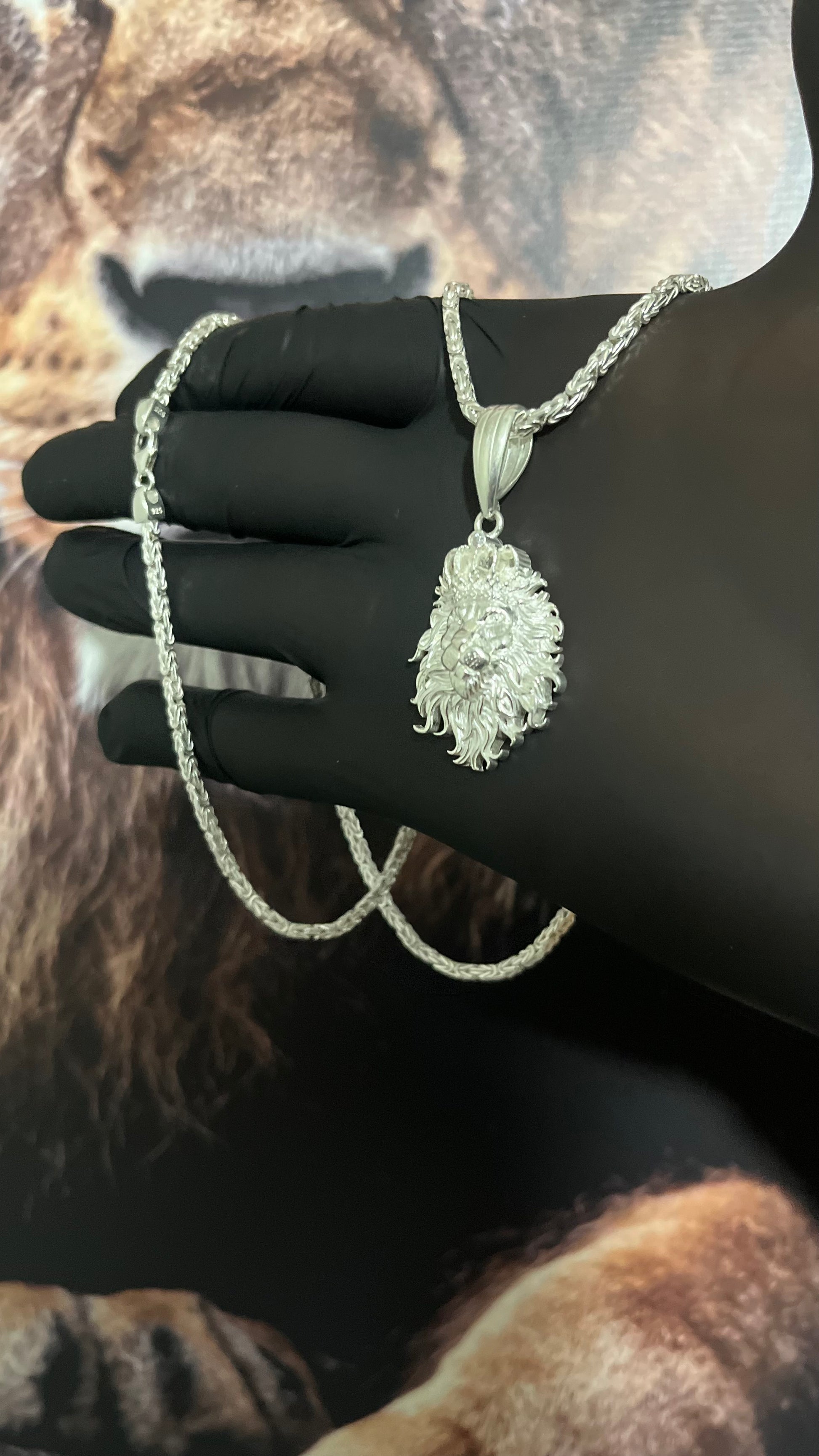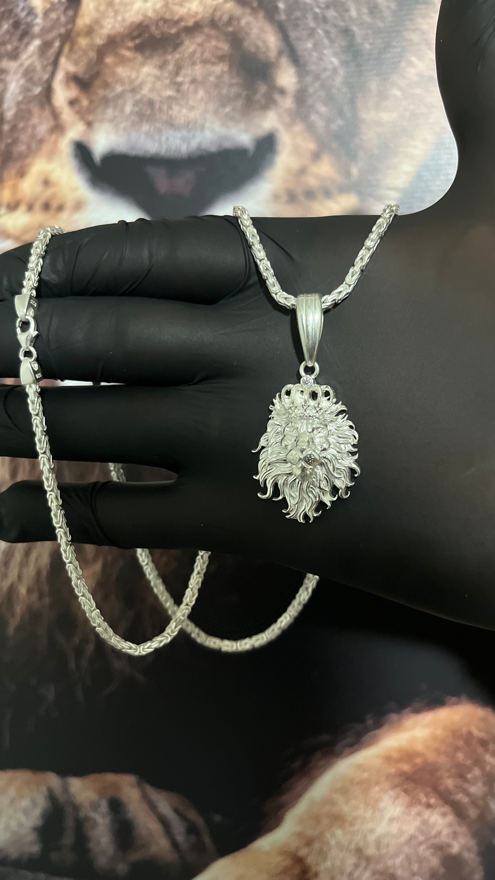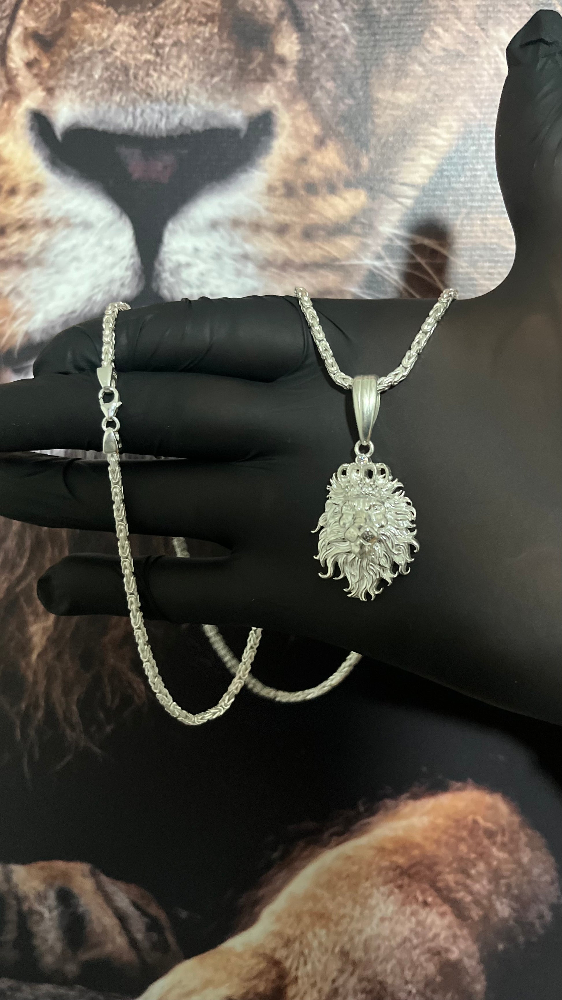 CORRENTE BIZANTINE/PERUANA 4MM X 60CM + PINGENTE LEÃO