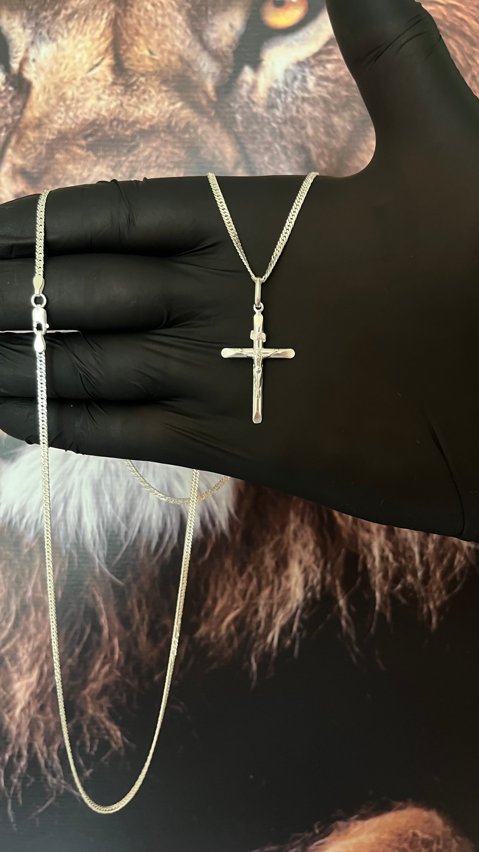 CORRENTE ELO DUPLO 2MM x 70CM + PINGENTE DE CRUCIFIXO