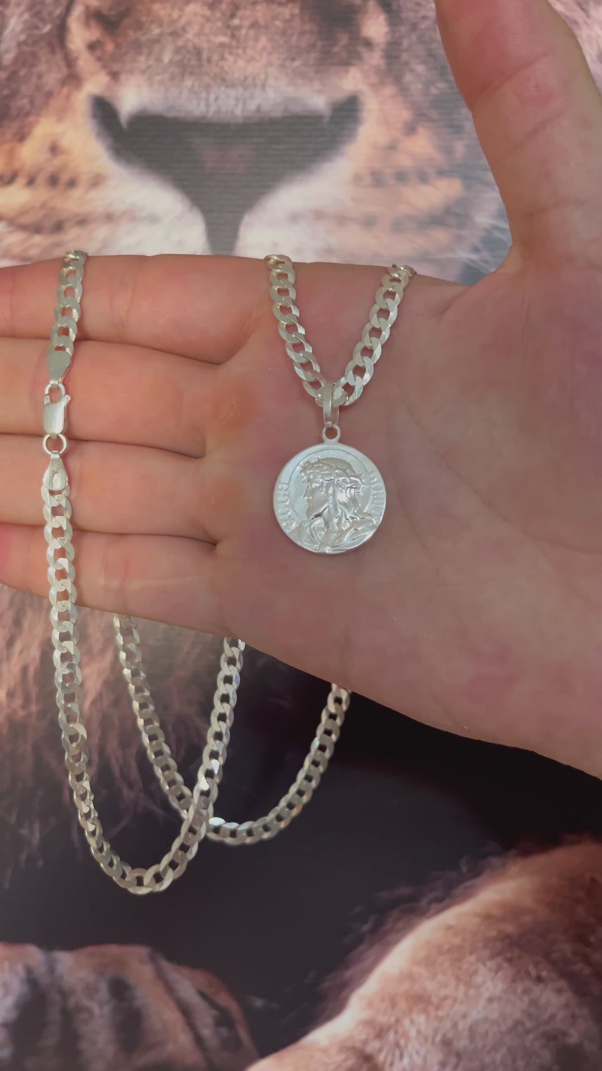 CORRENTE GRUMET 5MM x 70CM + PINGENTE CRISTO DOIS LADOS