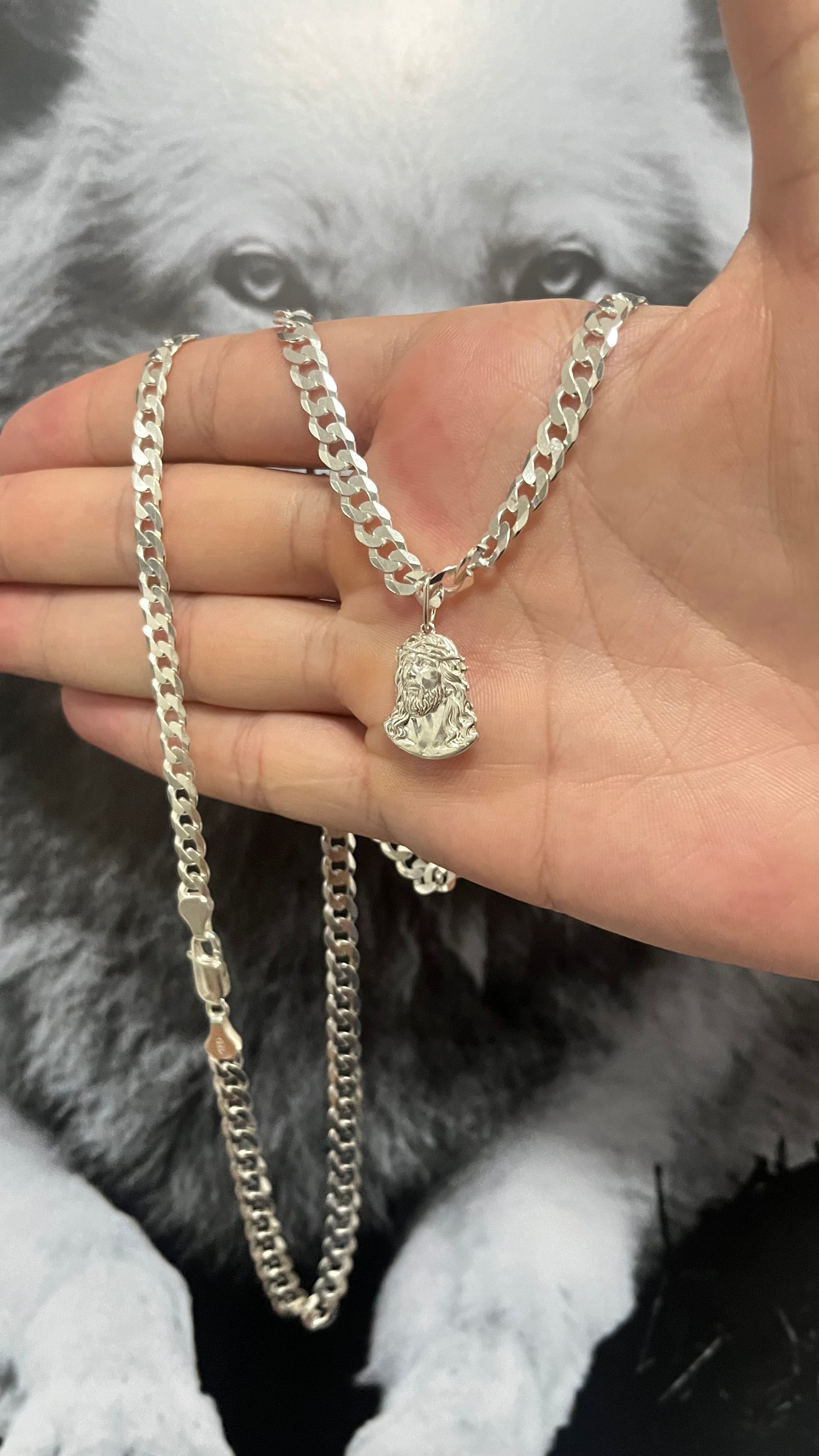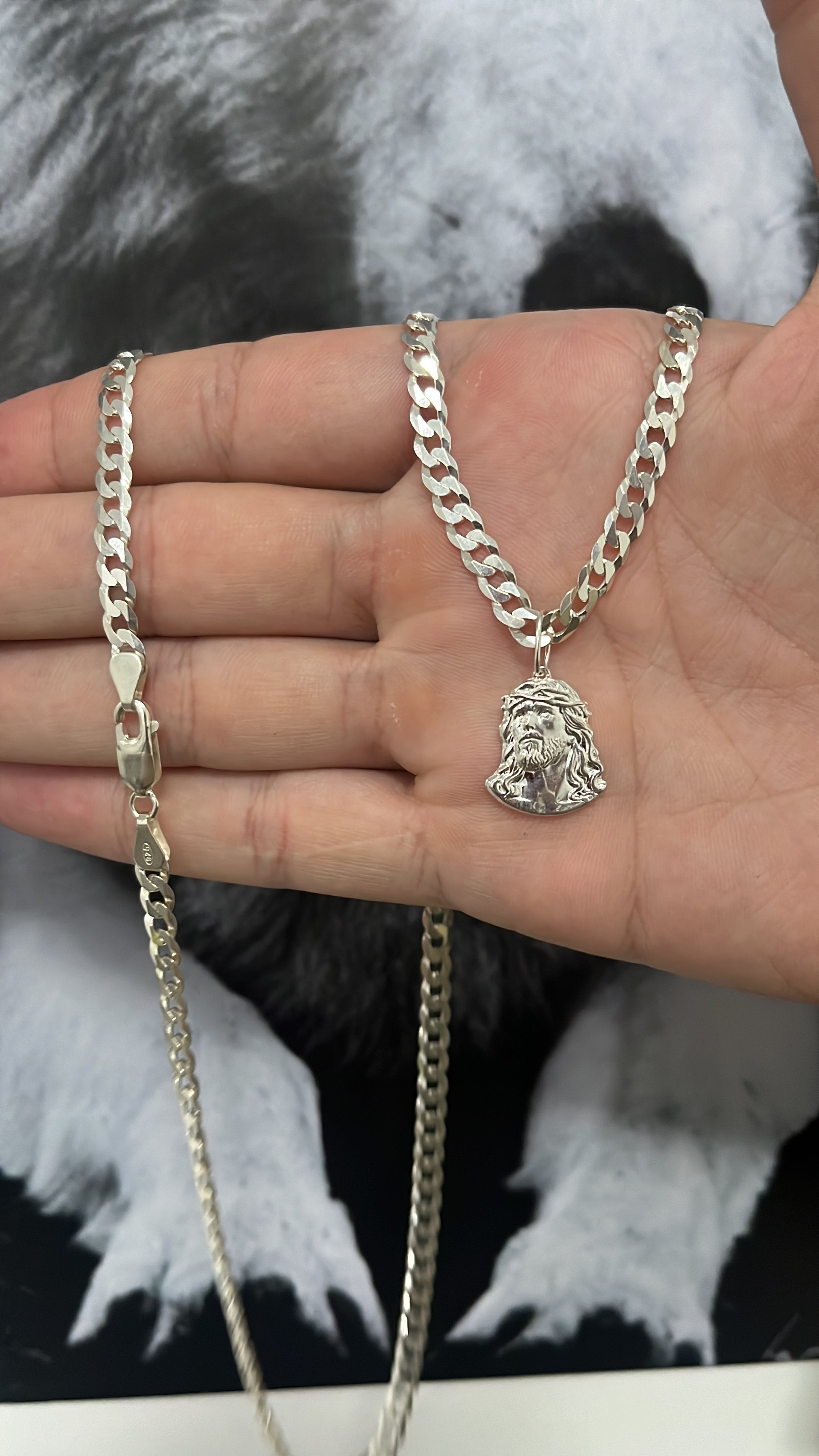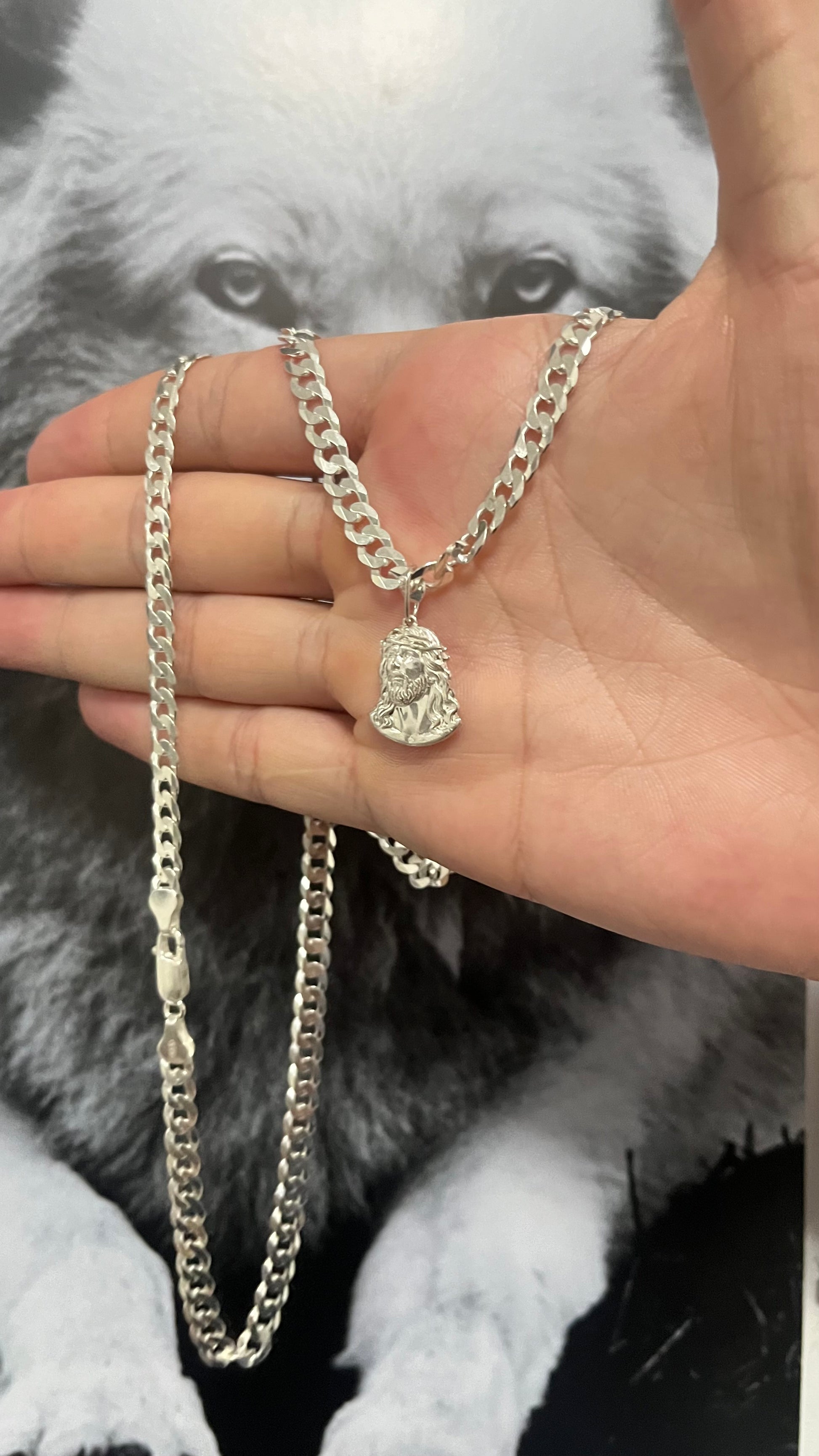 CORRENTE GRUMET 5MM X 70CMM + PINGENTE DE ROSTO DE CRISTO