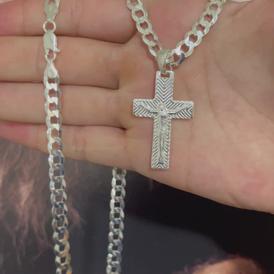CORRENTE GRUMET 7MM X 70CM COM PINGENTE DE CRUCIFIXO