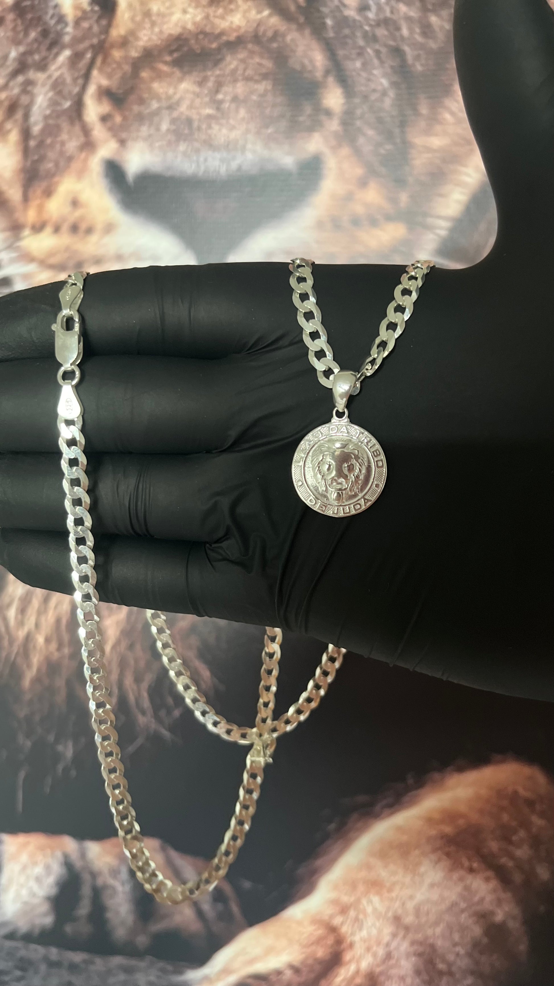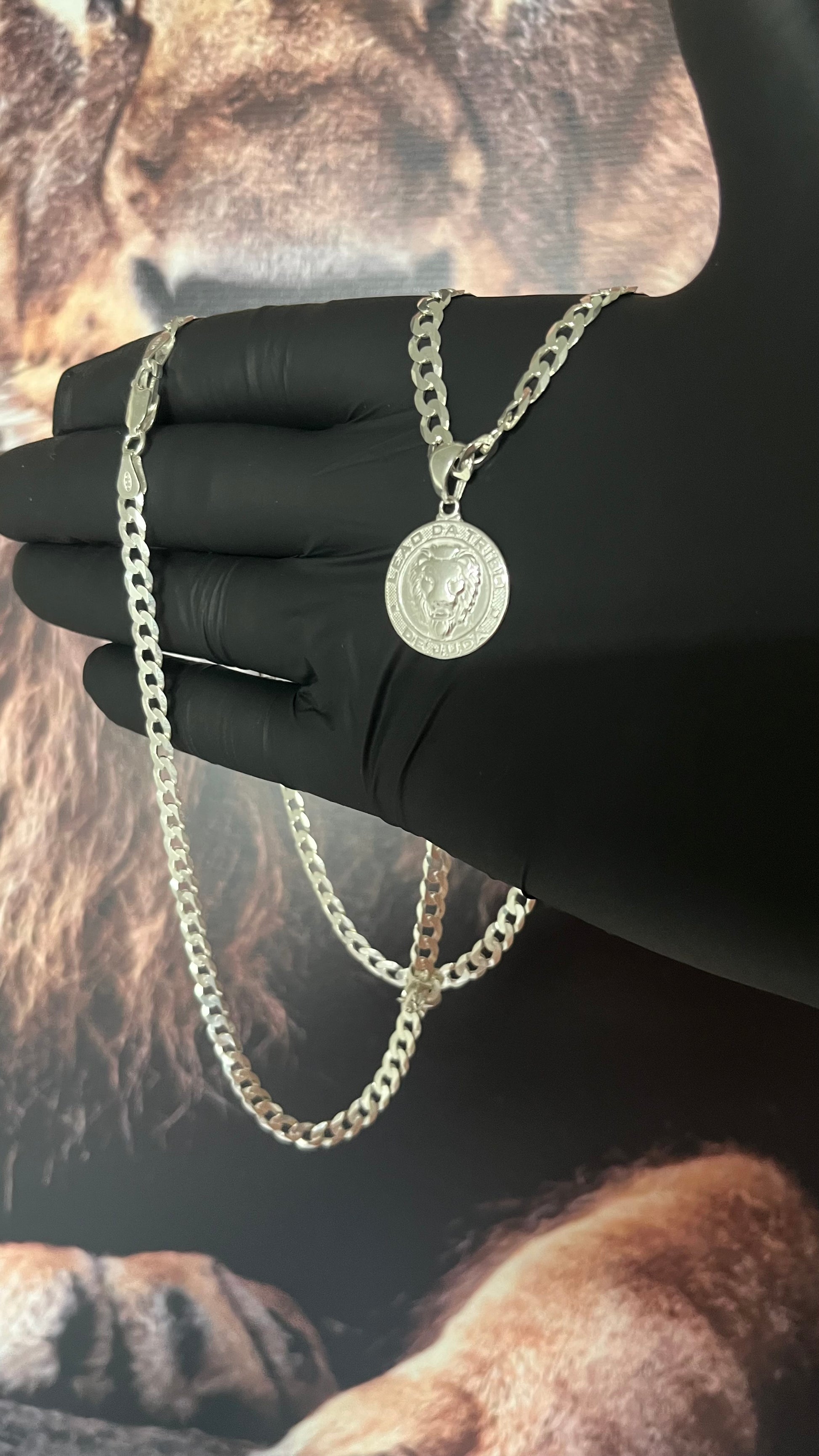 CORRENTE GRUMET 7MM X 70CM + PINGENTE LEÃO DE JUDÁ