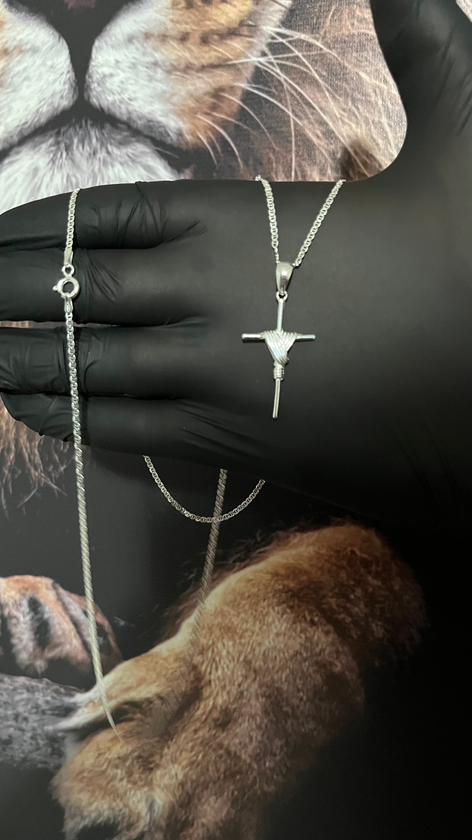 CORRENTE PIASTRINE 2MM X 70CM + PINGENTE DE CRUZ